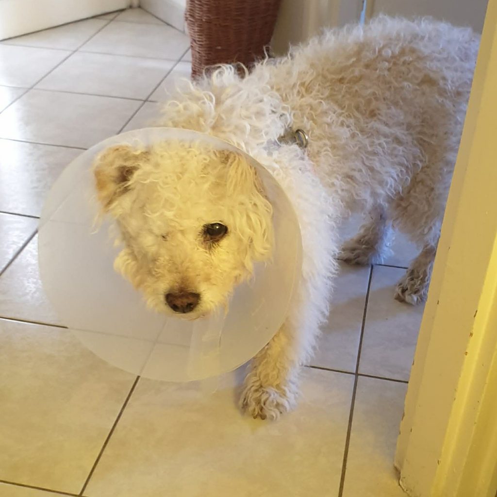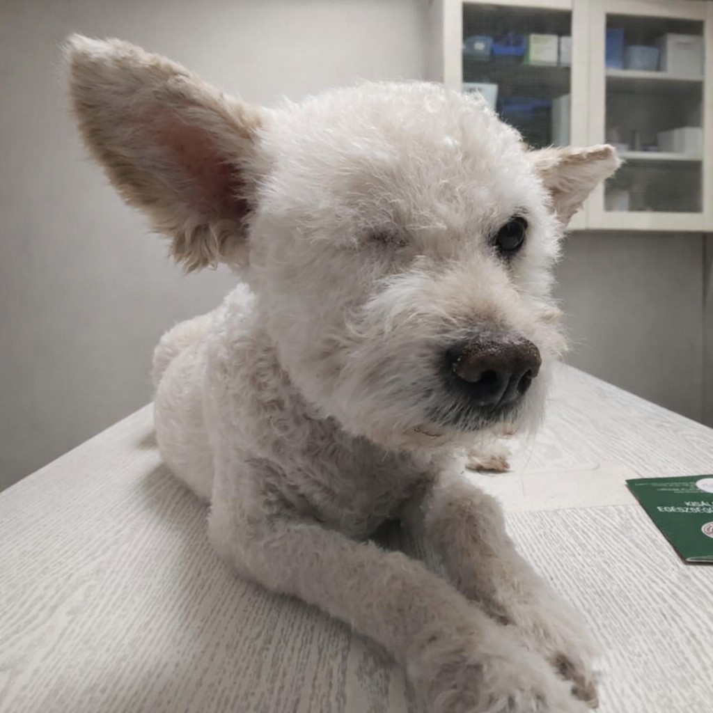 , ami folyamatosan irritálja. Ezek már alaphangon is 4 műtétet jelentenek. Szemészetre a héten megyünk Vele, de látása biztosan nem tökéletes. Reakciói alapján a hallása is igen csekély, ami tovább nehezíti a bizalomépítést, hiszen korlátozott érzékszerveivel egy idegen környezetben, elveszettnek érezheti magát. De már biztonságban van és mindent megteszünk, hogy mielőbb segíteni tudjunk rajta.