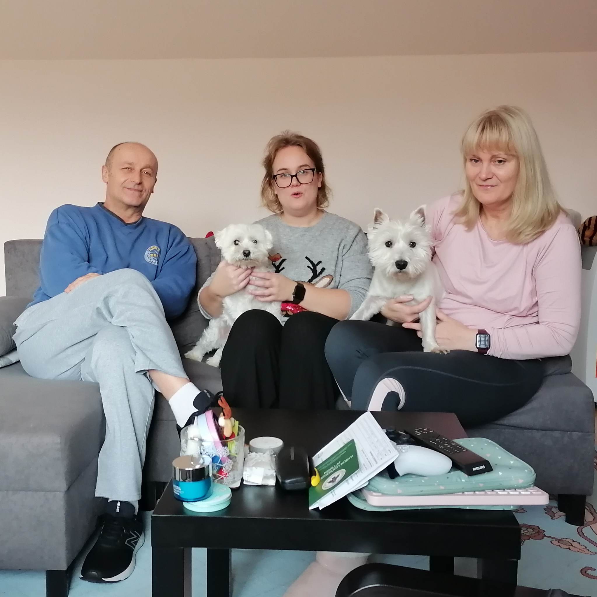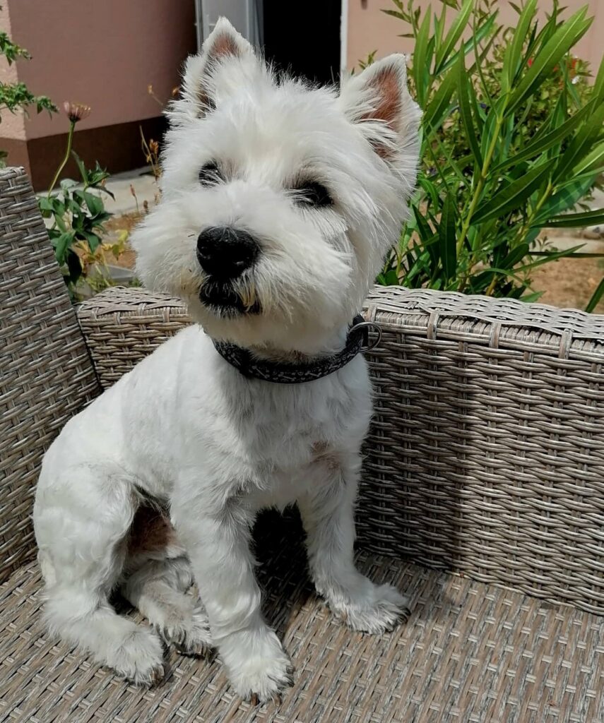 Döme még a nyár folyamán került hozzánk, enyhe allergiás problémákkal. Mivel nagyon gyorsan javult az állapota, hamar gazdikereső státuszba került. Ekkor azonban térdproblémára lettünk figyelmesek, amit meg is kellett műteni. Gazdikeresése ennek ellenére tovább folytatódott, de olyan családra vártunk, aki úgy vállalja Dömét a gyógyulási időszakban, hogy együttműködnek velünk az utókezelésben. Ekkor jelentkeztek Krisztiék, akik idén veszítették el előző kutyusukat, WRH Borát. Mivel allergiás kutyus volt, nem rémisztette el Őket, hogy Döménél is tartani kell majd a monodiétás táplálást. Döme könnyen belesimult a családba, viselkedésileg tökéletes kutya. Lába meggyógyult, szőre is nagyon szép lett, így mostantól Ő is a gazdisok táborát erősíti. A gazdiknak köszönjük, hogy részt vállaltak a rehabilitációban, hogy Winnie, a kis máltai mellé újra mentett kutyatesót választottak. Sok boldogságot kívánunk Dömével