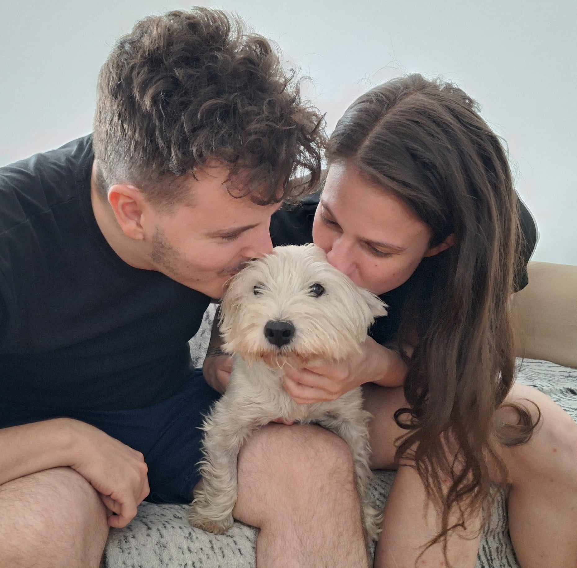 Dorka volt az a kutya, akin már a panzióban látszott, mennyire jól érzi magát a szaporítós múlt után, a megváltozott körülmények közt. Mennyit számít egy nyírás, egy fürdetés, mennyire meghatározó, hogy végre érzi, szeretik. Több gazdis talin is ott volt, mindenkit elvarázsolt. Aztán megérkeztek számára is a várva-várt gazdik, akiket cseppet sem riasztott, hogy 8 éves elmúlt. Költözött, tanult, ivartalanodott, gyógyulgatott, most pedig hivatalosan is gazdis kislány lett ! „Mivel volt egy westiem, már régebben is ismertem és nézegettem a WRH-t. Alapvetően csak az aranyos kutyás képek miatt, viszont pont mikor már az életkörülményeink is adottak lettek, az egyikük nagyon megtetszett, felvettük a kapcsolatot a WRH-val. A kiszemeltünket addigra már más befogadta, de a telefonban ajánlottak két másik kutyát és az elmondottak alapján Dorka megfogott minket. Az első találkozó minden elképzelésünket felülmúlta, nem volt kérdés, hogy szeretnénk elhozni. Eddig két és fél hetet töltött nálunk, az egyetlen kihívást a pórázas pisilés jelentette, de már ezen is sikerült túllendülnie. Az első napokban még a lakásban is követett minket mindenhová, mára már nyugodtabb, sokat fekszik az ágyában és néha játszik a játékaival. A családunkban élő másik kutyával a kezdetektől barátságot kötött. Juli, Márk sok-sok boldogságot kívánunk a közös életetekhez !![]()