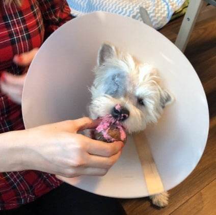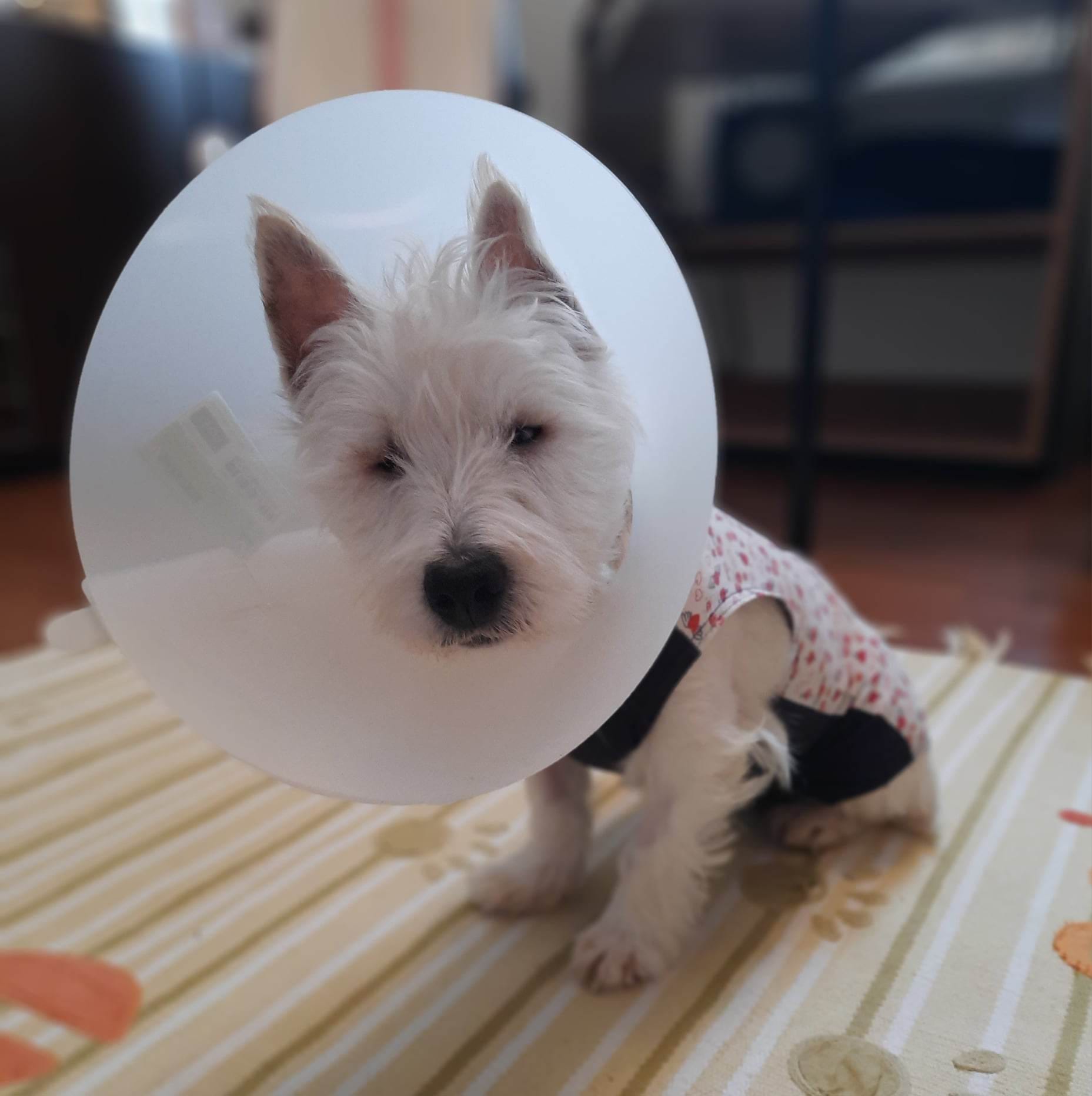 Vak kislányunkkal egyetlen teendőnk maradt, szemészdoktornéni tanácsára, a csökevényes szemének eltávolítása. Talán rémisztően hangzik, de ez egy viszonylag egyszerű és gyors beavatkozás. Ha halogatjuk, a jövőben okozhatott volna problémákat, ezért gyorsan túlestünk a műtéten. Kelly teljesen rendben van, sokat alszik. Nála a tölcsérviselés jelent egyedi problémát, mert abból fakadóan, hogy nem lát, nem érti mi akadályozza most a mozgásában. De ez a 2 hét gyorsan eltelik majd és varratszedés után újra a tőle megszokott hatalmas energiával futkározhat, kergetheti a galambokat, amit nagyon szeret. Ideiglenes családjában nagy szeretetben és elfogadásban van része, de az igazi az lenne számára, ha valaki beleszeretne és költözhetne gazdijelöltjéhez. Közben a kutyatesó szülinapján maszatolta össze magát a kutyasütivel