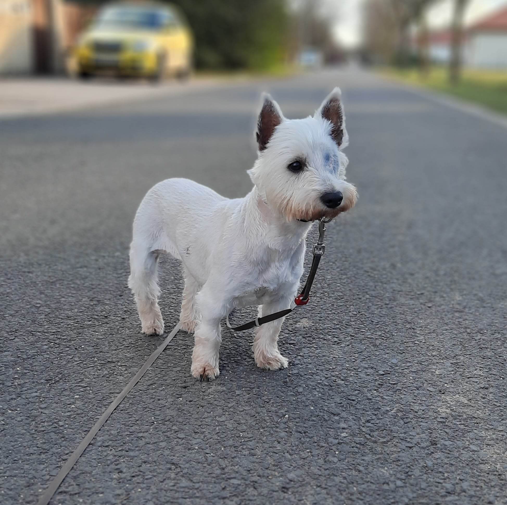 Odie szintén 4 év körüli kislány kutya. Alap vizsgálatok szerint egészségesnek bizonyult, kivéve hogy a bal szeme súlyosan sérült. Közben már szemészeti vizsgálaton is jártunk vele, műtétre azonnal előjegyezték. Társainál valamivel félénkebb, visszahúzódóbb, amiben a korlátozott látása is szerepet játszhat. Ideiglenes családja tanítgatja neki a szobatisztaságot, bátorítják és hagyják, hogy saját tempójában próbáljon beilleszkedni. A póráz felcsatolásánál egyelőre teljesen lefagy. Nyugodtabb, mint a többiek, békésen kivárja hogy részesüljön szeretetünkből.