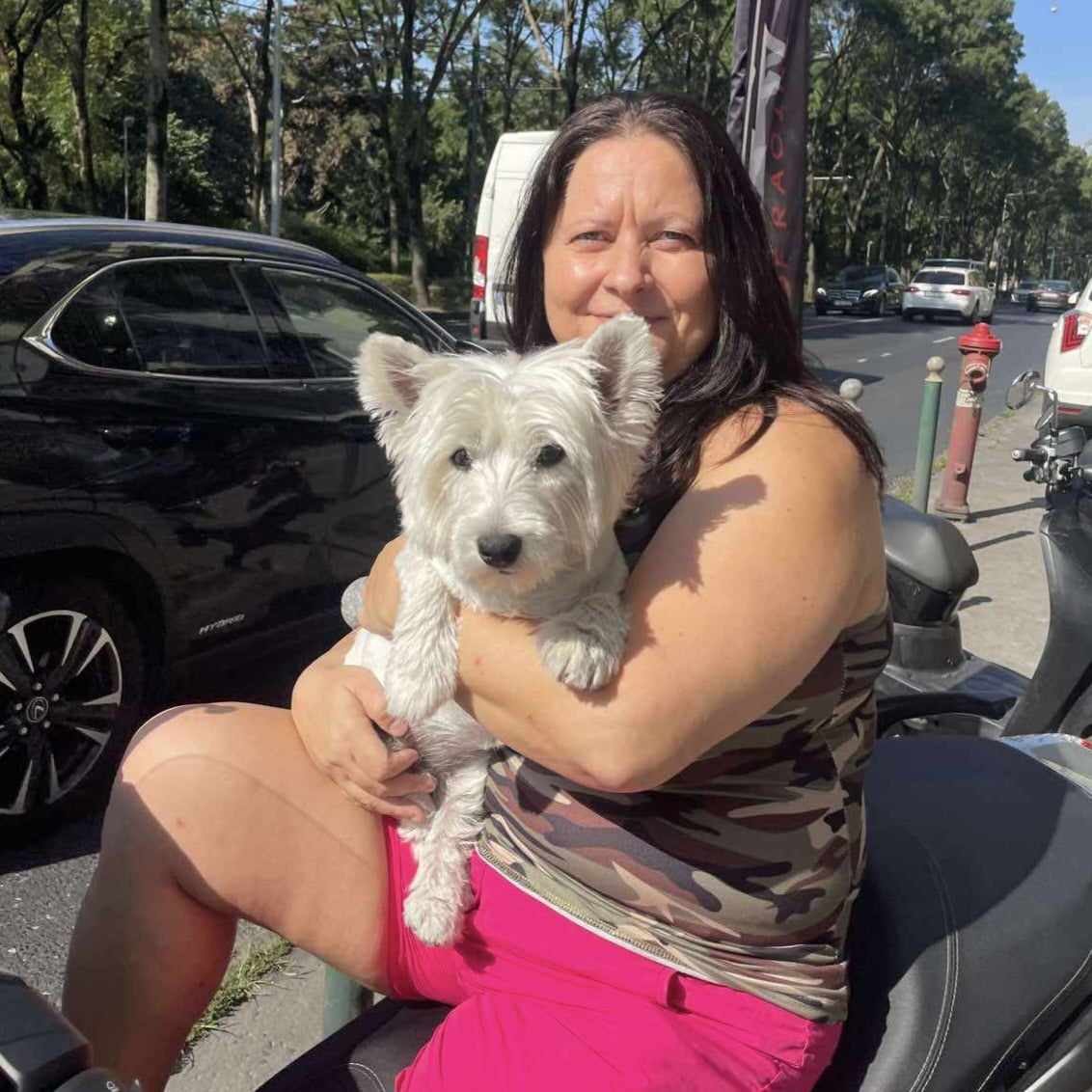 Kétlábúanyu amúgy motorozik, s vett nekem egy táskát, amiben én is vele mehetek a munkahelyére, ahol ott fekhetek mellette. Játszik velem, ha szólok neki, és mindenki örül és simogat és nagyokat sétálunk a mellettünk levő parkban. A doktornéni azt mondta olyan vagány lettem, hogy legközelebb talán már tetkó is lesz a fenekemen.