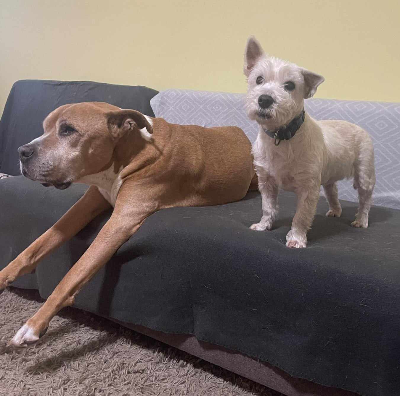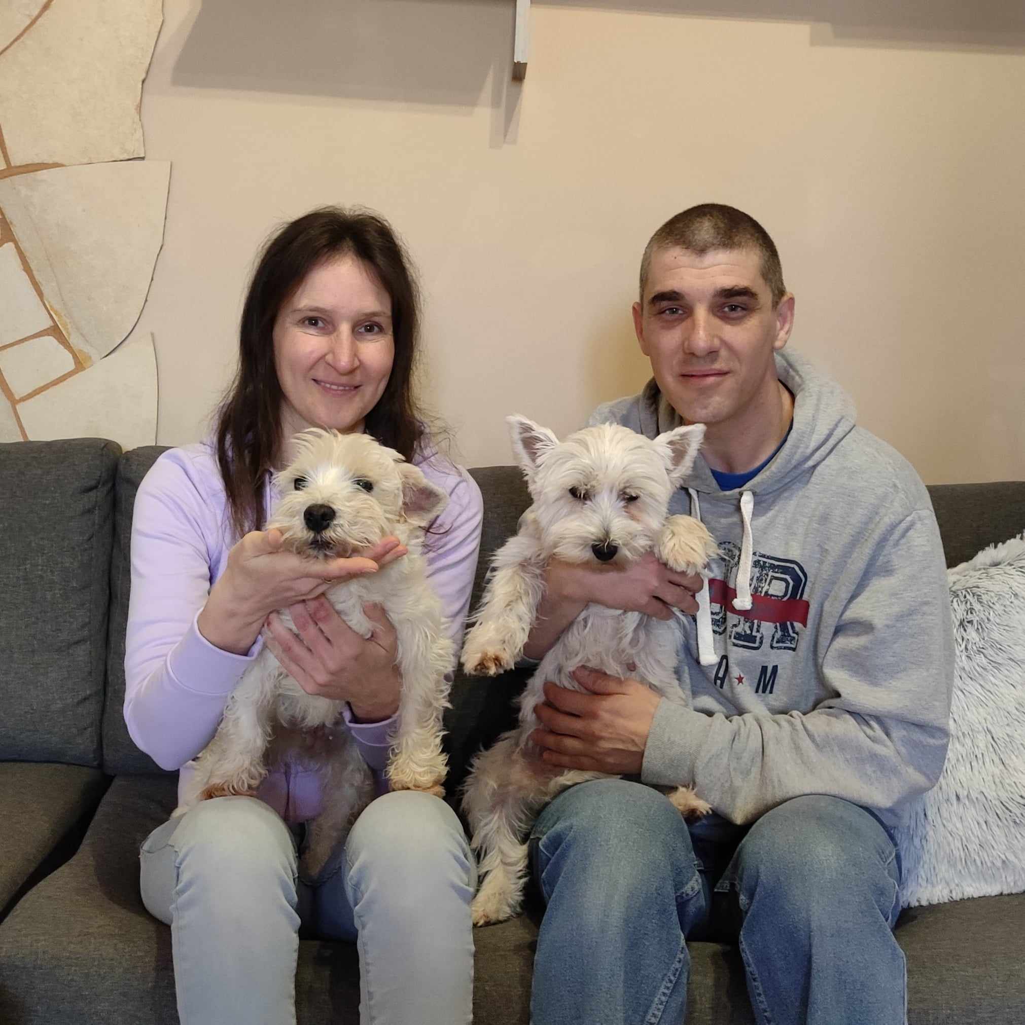 Elvíráék eleve úgy indultak, hogy két kutyát szeretnének, ráadásul nem az egészségügyileg tökéletes kategóriában gondolkodtak. Az egyik kiszemelt Szilvi lett, aki allergiagyógyszert szed, mellette a szemei is kezelés alatt állnak. A másik választásuk pedig Pannára esett, aki szintén gyógyszert szed és mindkét füle hallójáratírtott, tehát gyakorlatilag süket. Tudták, hogy ezek plusz költséget jelentenek majd a jövőben, de van már ilyen tapasztalatuk, így nem hátráltak meg. A találkozást egyszerre szerveztük meg a 2 kutyussal, innentől pedig csak arra vártunk, hogy megtörténjenek Szilvi kontrollvizsgálatai, illetve Panna ivartalanítása. Új otthonukban felfedezték a kertet, a házat és a kezdeti félénkség után néhány nap után igazi kis gézengúzokká váltak. Figyelik a környék történéseit, morgolódnak, járőröznek a kertben majd a fárasztó nap után békésen és összebújva szunyálnak. A gazdik boldogan újságolták, hogy megtelt élettel a házuk és a két kislány mennyire hamar összehangolódott. Hálásak vagyunk, hogy a két kislány együtt élhet innentől és sok boldogságot kívánunk Nektek![]()