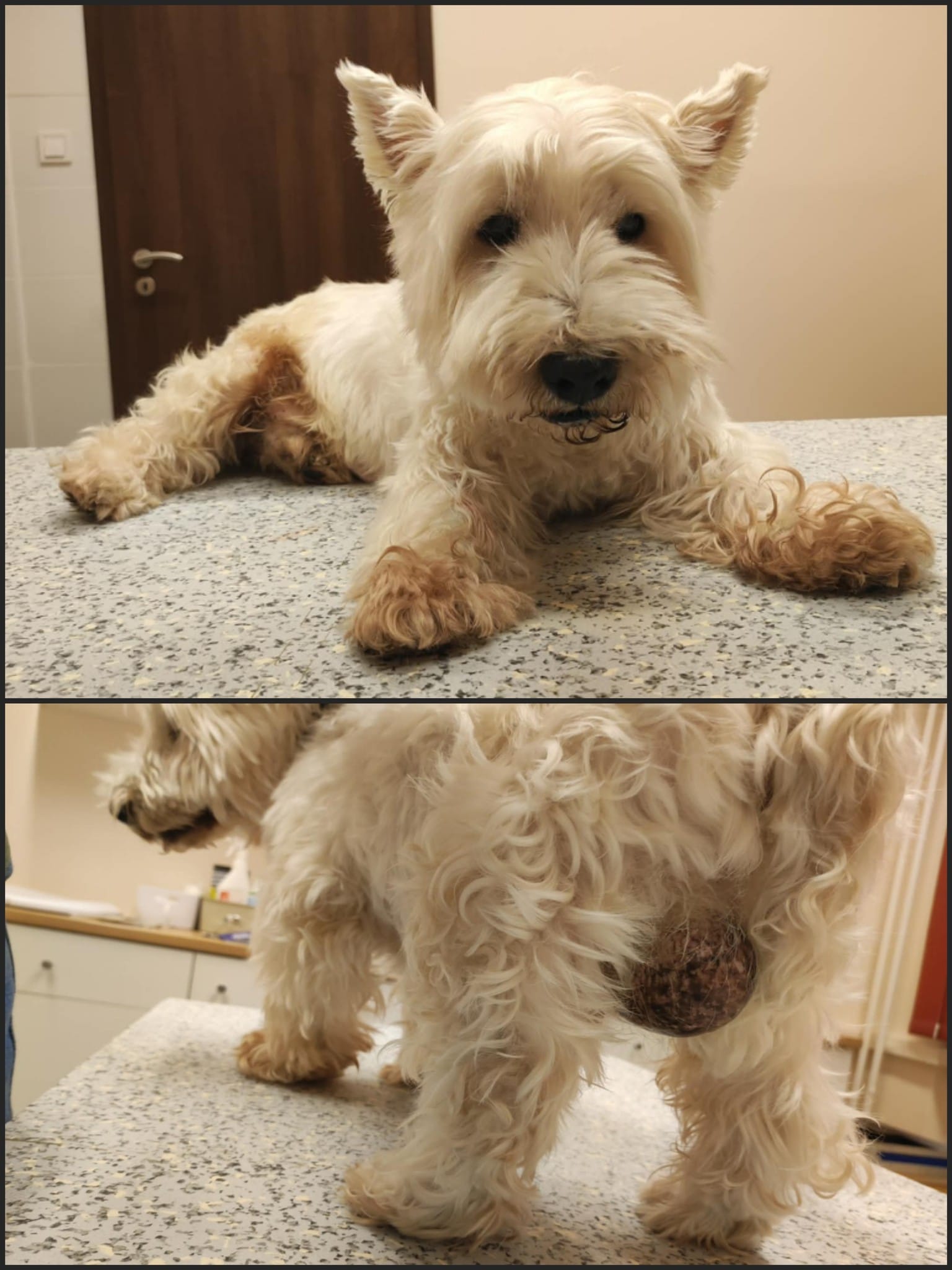 bár volt, aki megkérdezte, miért nem engedjük el Őt, mi az orvosokkal konzultálva úgy döntöttünk, megpróbálunk adni még egy szép időszakot Petinek.A fájdalmak megszüntetése volt az első célunk, ezért egy komoly fogászati beavatkozáson esett át. Sok fog és rengeteg fogkő került eltávolításra.Végre tud kellemetlenségek nélkül enni.Csilla doktornéni, a kivizsgálás alapján engedélyezte a következő nagy műtétet, ezért abba is belevágtunk.Eltávolította a hatalmas heredaganatot és az UH alapján daganatos lépet is.Egy ilyen kicsi kutyából kb emberi méretű, csúnya elváltozást mutató szervet operált ki